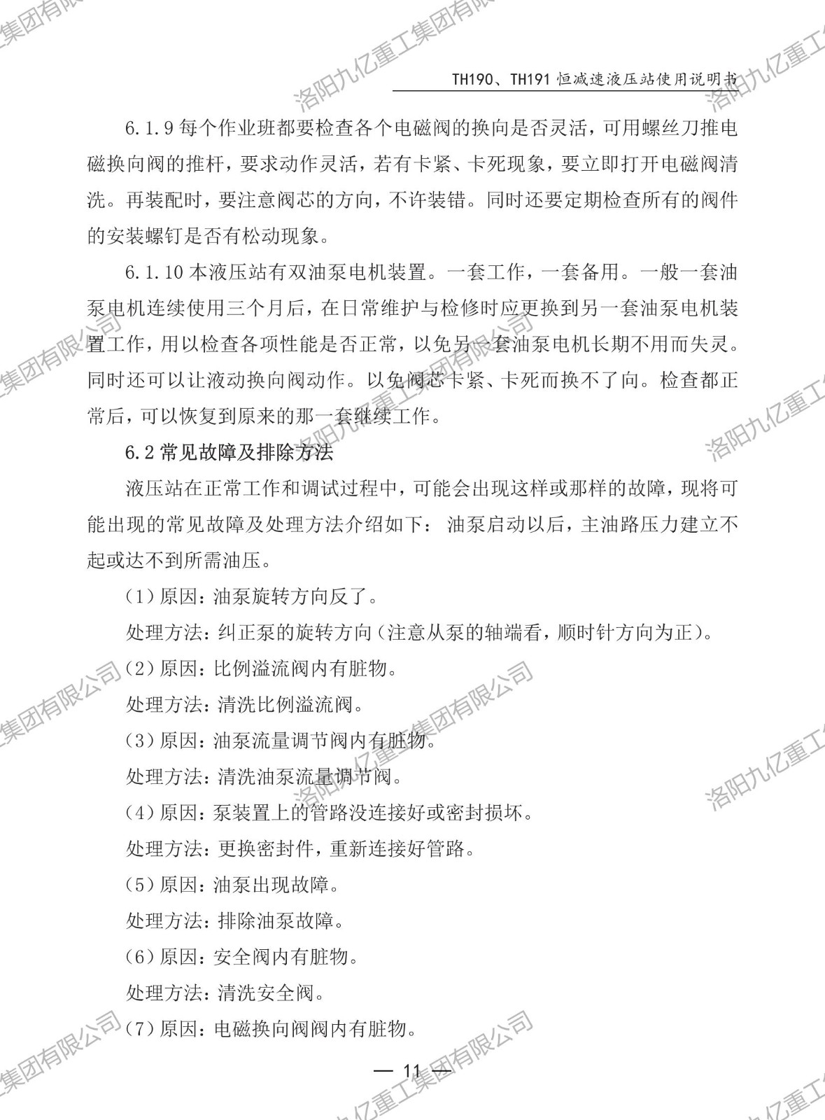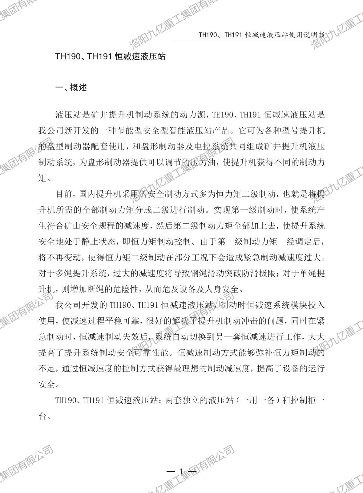 恒減速液壓站TH190、TH191使用說明書